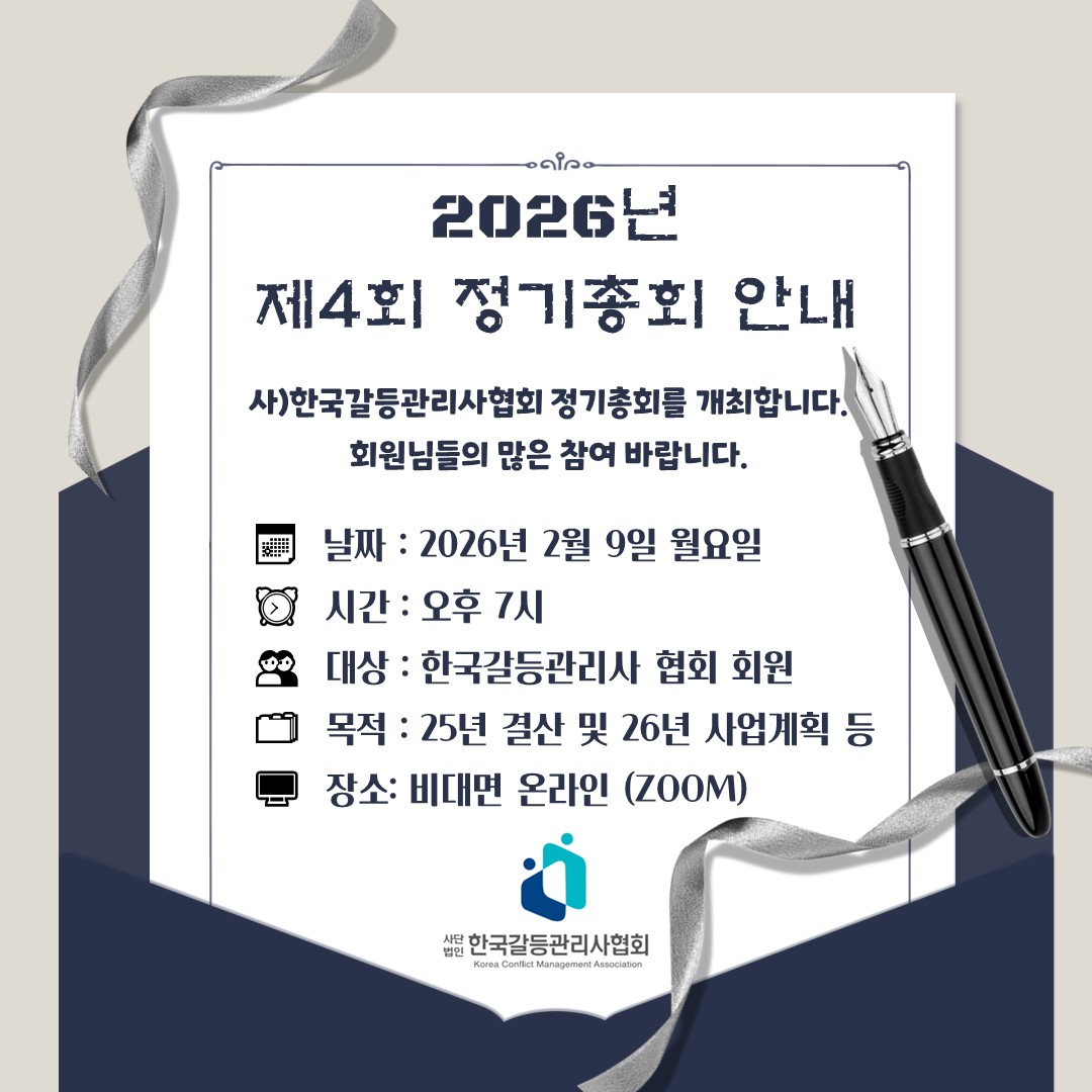 2026년을 맞이하여 협회의 2025년 결산 및 2026년 사업계획에 대한 정기총회를 아래와 같이 개최하고자 합니다.